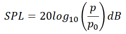 위 수식에서 P0은 1kHz에서 사람이 인지할 수 있는 가장 작은 압력인 20uPa을 기준으로 합니다.