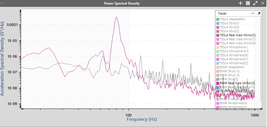 - Tesla가 소음 관점에서 BMW보다 조용하지만, PSD 관점에서 Tesla strut이 BMW strut보다 높게 나옴